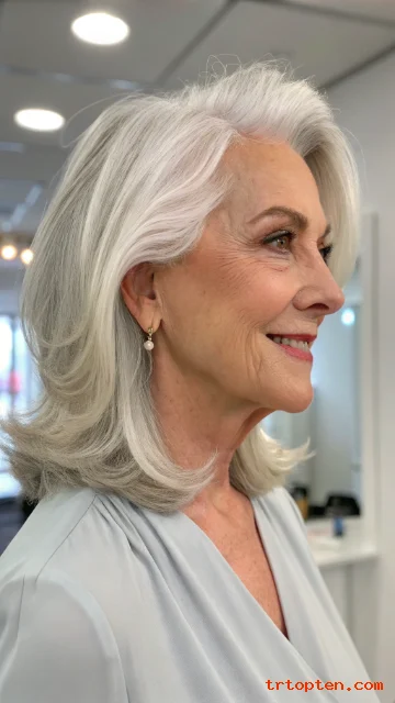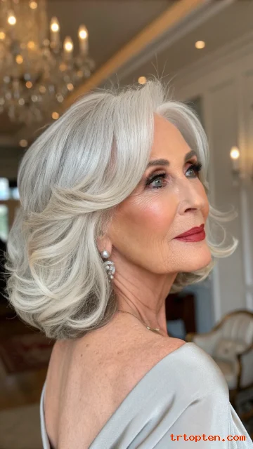 This hairstyle gives a confident and elegant look. It works well for older women who want a polished style with body. It is also easy to maintain with regular trims.