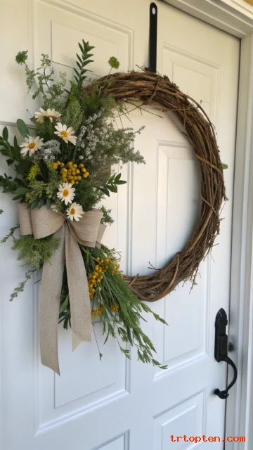 This wreath works well in every season because the colors stay calm. Add a small jute bow to finish it in a rustic way.
