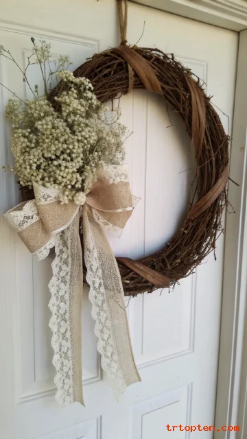 Use cream lace so it matches farmhouse neutrals. Add dried baby’s breath for a light, airy finish.