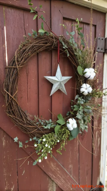 A barn star is a classic farmhouse symbol that adds bold character. It also makes the wreath look anchored and structured.