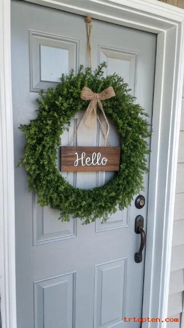 Rustic Farmhouse Wreath With Wooden “Hello” Sign