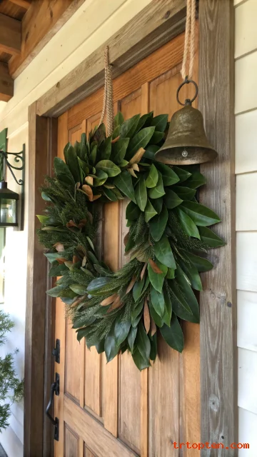 Magnolia Leaf Wreath With Brass Bell