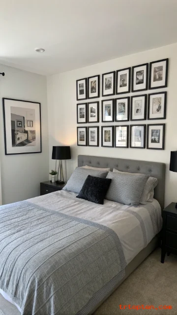 Black-and-Grey Gallery Wall Over the Bed