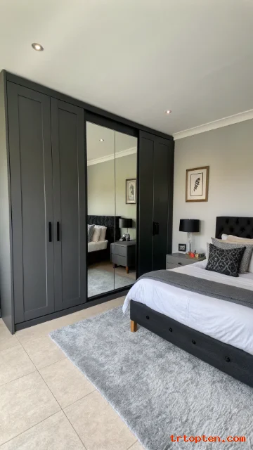 Place a full-length mirror nearby to reflect light. This helps the black surface feel less dense. Keep the wardrobe doors flat or lightly textured.