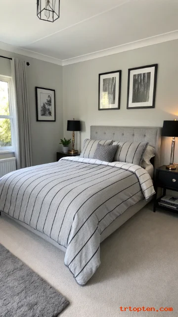 Pick grey bedding with a thin black pinstripe pattern. The lines add style while staying calm. This works well in small bedrooms that need detail without clutter.