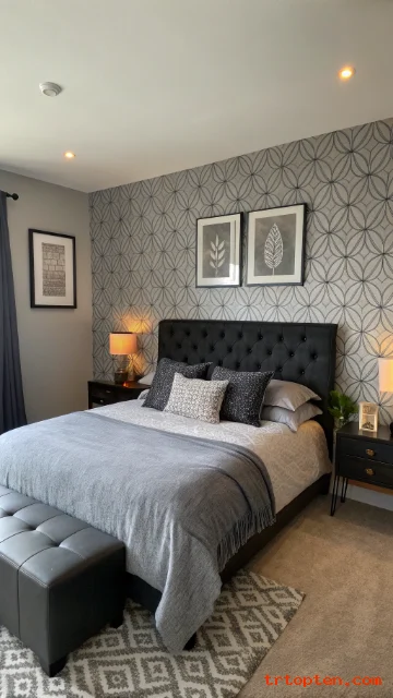 Pick a grey wallpaper with a small black pattern like thin lines or tiny dots. The pattern adds interest while staying calm. This works well in bedrooms that need character.