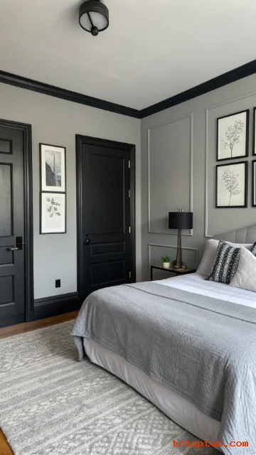 Paint trim, baseboards, or door frames in black while keeping walls grey. This creates a graphic look and adds structure. The room feels custom with little effort.
