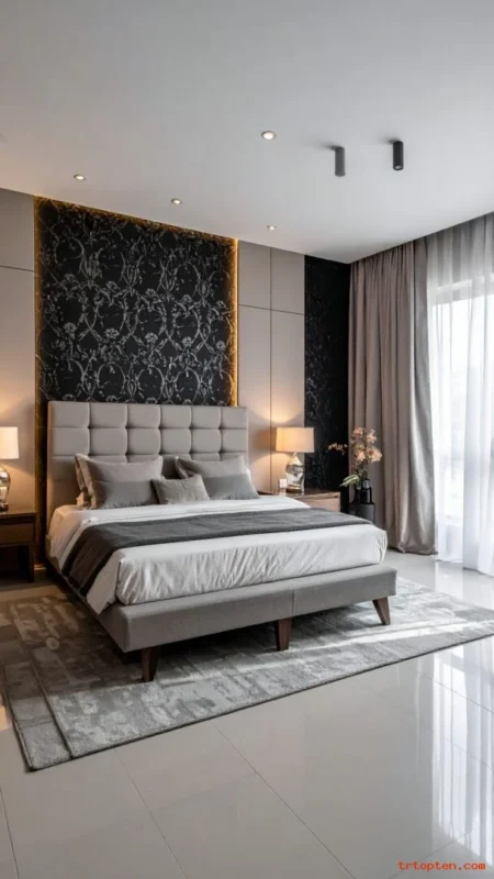 Place it behind the bed for the strongest impact. Add soft lighting from the sides to show the texture. Keep other walls simple and light. Use bedding in white and gray for a clean finish.