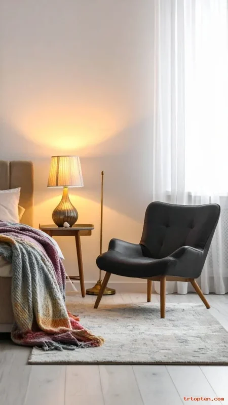 Place the chair near a lamp and a small side table. Add a soft throw to make it inviting.