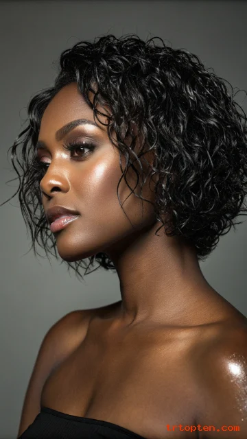 A wet-look bob gives curls a glossy, defined finish. The shine makes the style look fresh and bold. This bob stands out in photos and at events.