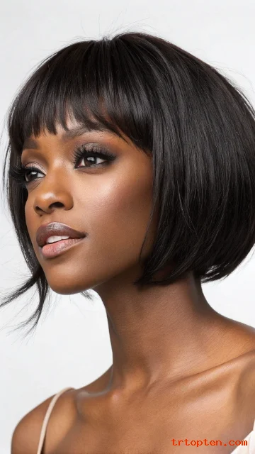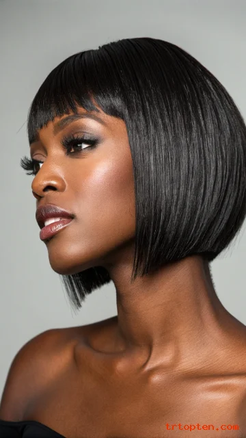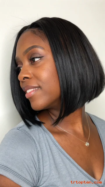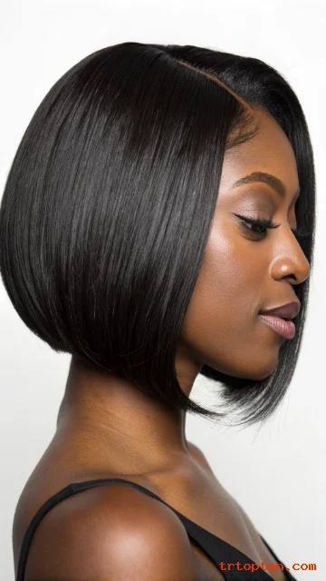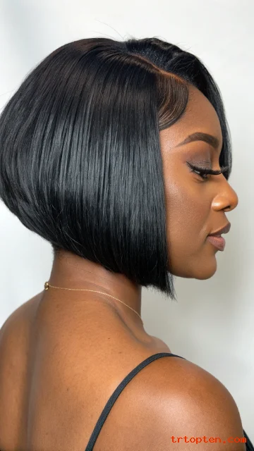 Ask for a long front section that blends into the bob. Wrap the hair at night to keep the swoop smooth. Use edge control lightly for a clean hairline.