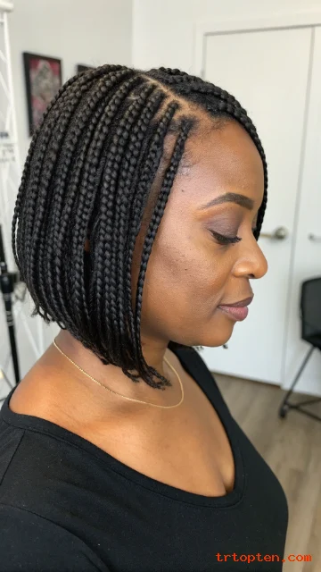A knotless braid bob looks natural at the roots and feels lighter. The style reduces tension and still looks crisp. It works well for protective styling goals.
