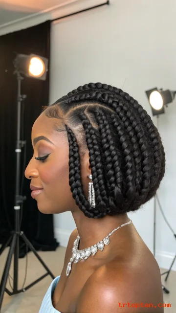 A goddess braid bob adds thick braids and a regal feel. The bob length keeps the style practical and neat. It looks great with gold cuffs or simple beads.