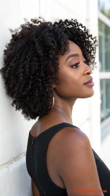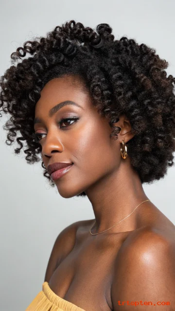 A coily bob shape gives a rounded outline with strong texture. The silhouette looks full, neat, and very modern. It keeps coils healthy because it needs less heat.