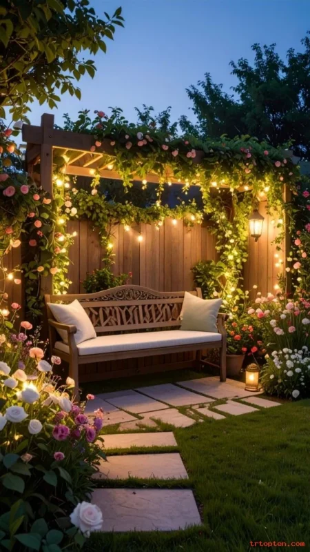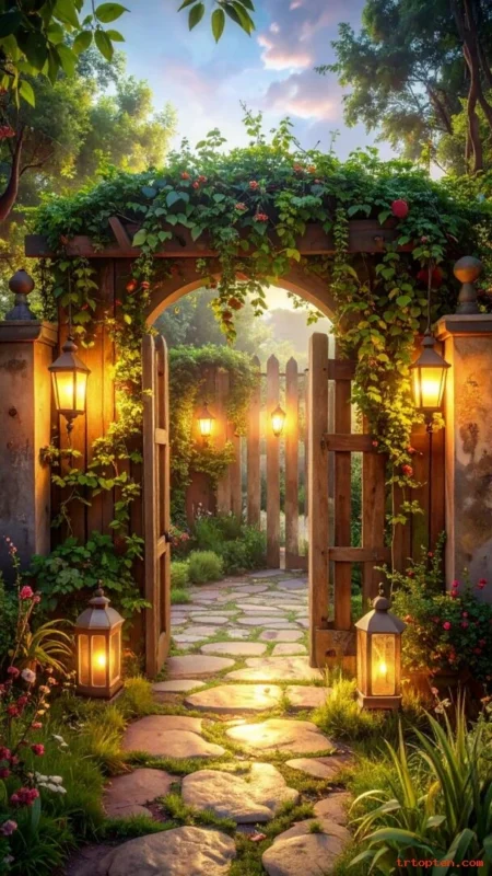 Place a stepping stone path leading to the gate for a complete look. Add lanterns or solar stakes along the path. This idea makes your garden feel like a little escape.