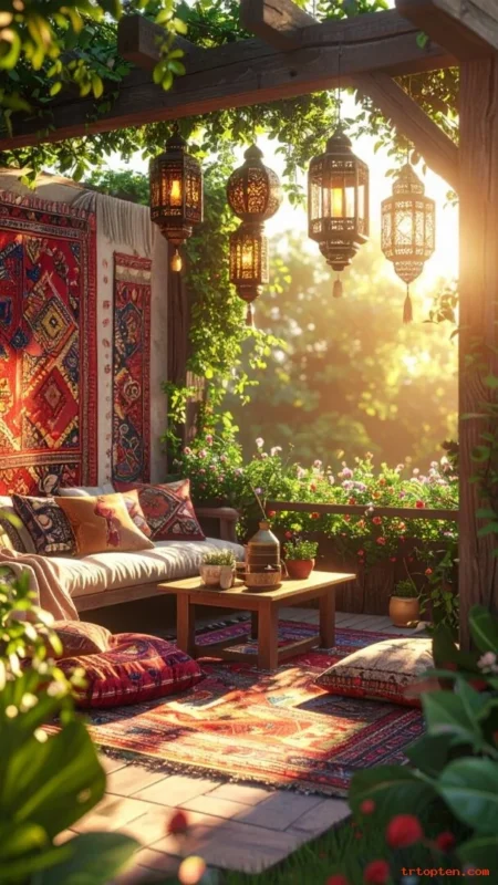 Pair the lanterns with low seating and colorful pillows nearby. Add textured rugs made for outdoors to strengthen the boho theme. This idea works in both small patios and large yards.
