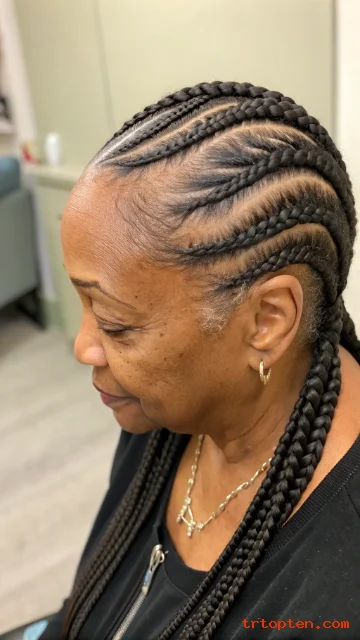 Cornrows are a traditional braiding technique that lies flat against the scalp. For older women, looser tension is key for comfort and scalp health. Simple, straight-back designs offer a sleek, low-maintenance look.