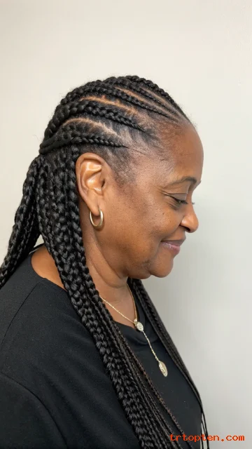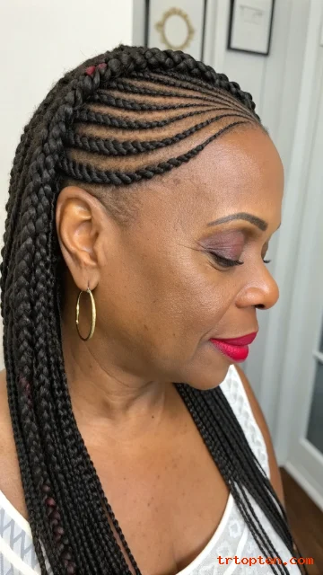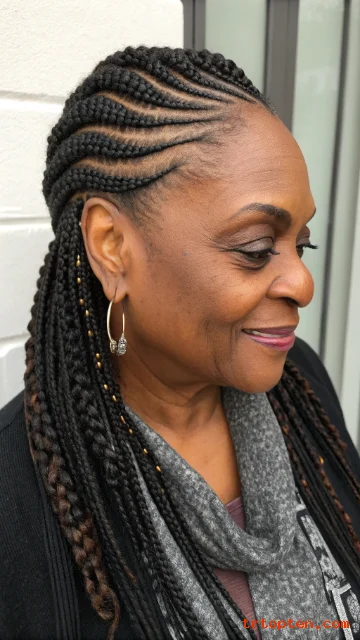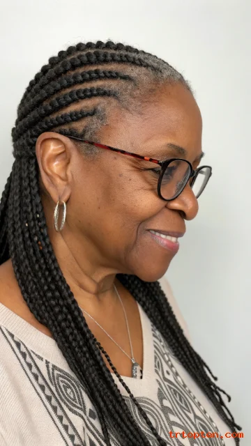 These 26 braids for older black women over 50 give you protective options that look stylish and feel comfortable. You can go classic with box braids, sleek with stitch cornrows, or soft with twists and curly ends.