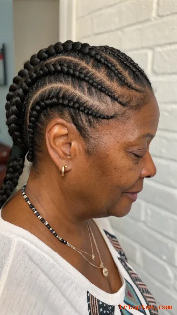 Ask for medium thickness rows for comfort. Keep the ends braided down or tucked into a low ponytail. Use a light scalp oil to prevent itching.