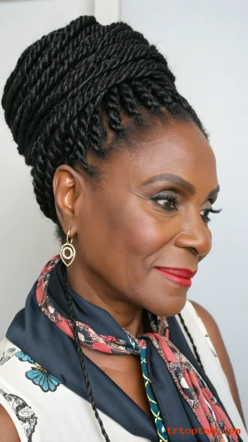 Jumbo twists install faster and feel bold. A low bun keeps the look neat and secure. This can be a great choice if you want less salon time.