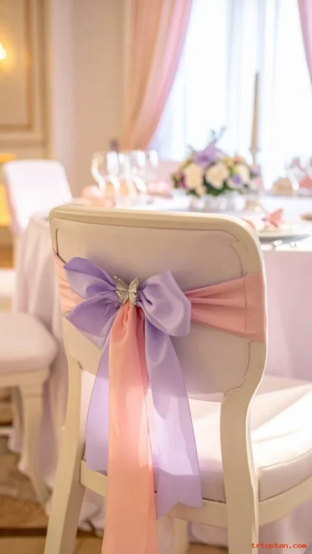 Chair bows make the room look dressed up fast. Tie ribbons on the chairs in two or three matching colors. Add a small butterfly charm or clip to the knot.