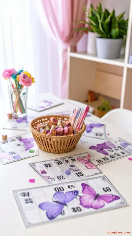 Print the cards on thick paper so they feel nicer. Use small butterfly confetti as markers. Keep the calling list simple and clear.