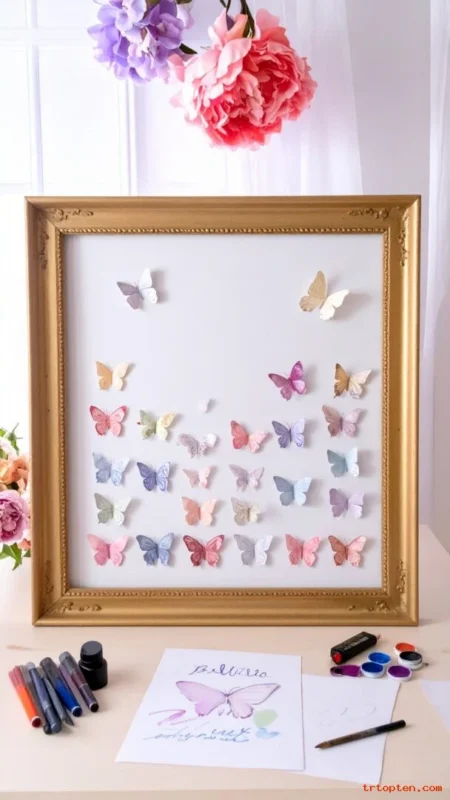 Provide a few ink colors that match the palette. Include a sample signed butterfly so guests understand the idea. Keep extra butterflies ready for mistakes.