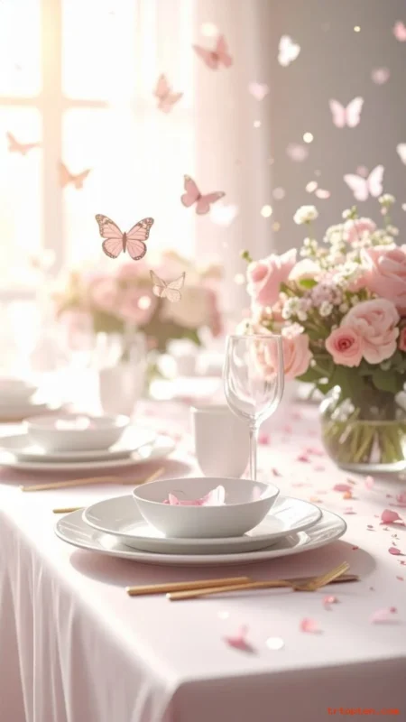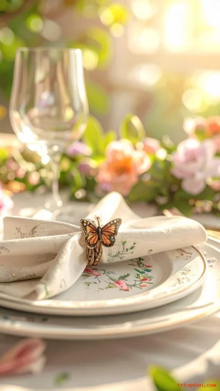 Choose cloth napkins if possible for a richer feel. Keep patterns light so the butterflies stand out. Match the ring tone with your metallic accent.