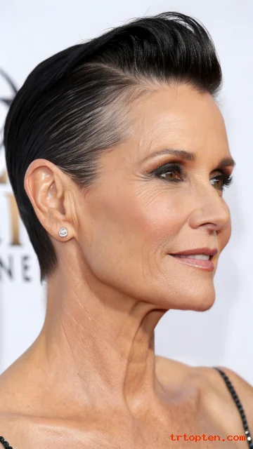 A slicked-back pixie offers a glamorous, red-carpet-ready aesthetic. Hair is smoothed back from the forehead and temples using strong-hold gel. The sides can be tucked neatly behind the ears for a clean look. This style beautifully highlights your bone structure and facial features. It is a bold, confident, and modern choice.