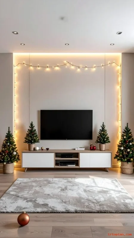 Add a thin garland below the TV or along the console to soften the space. This helps the TV area feel festive without clutter.