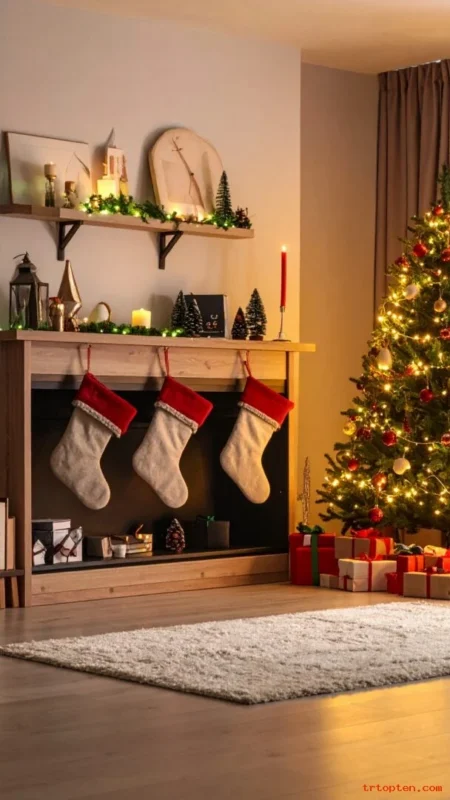 Hang stockings on a wall shelf, ladder, or console if you do not have a mantel. This keeps the classic look in any space.