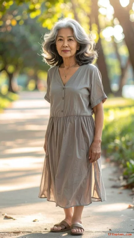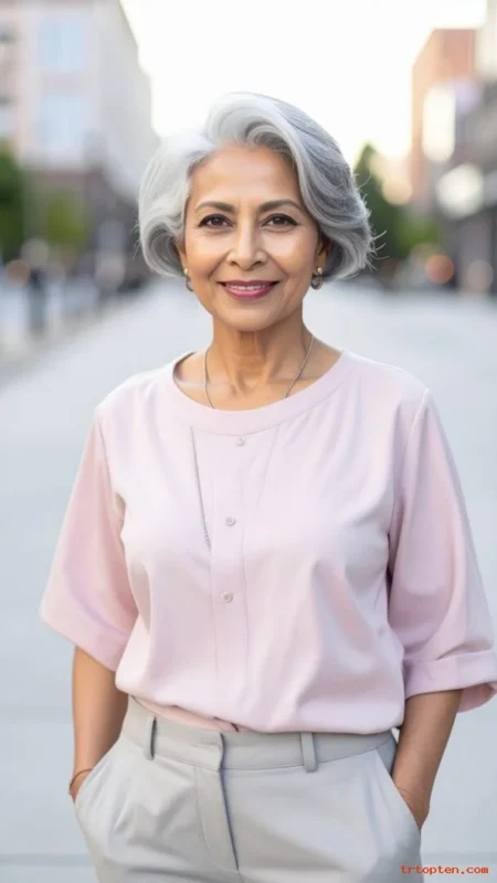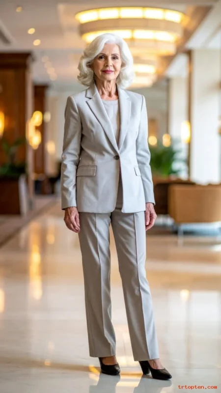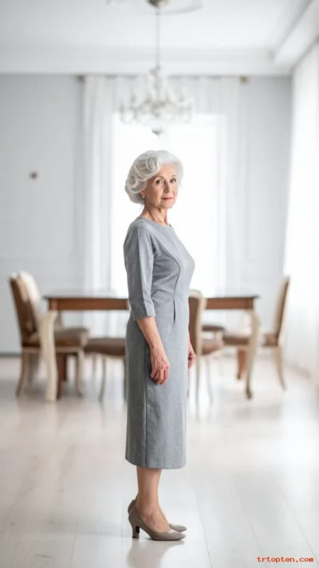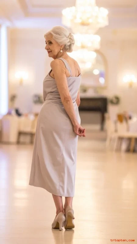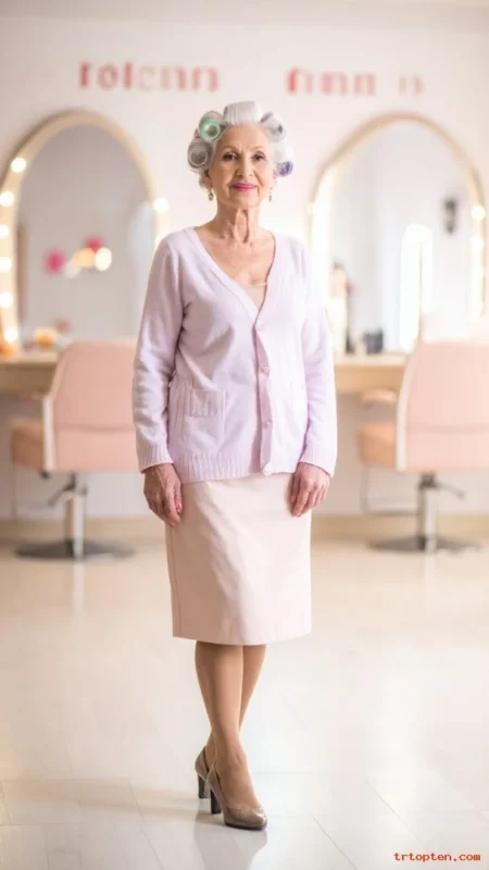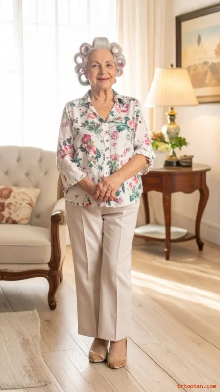 For women over 70, a French twist highlights graceful posture and necklines. It pairs well with dresses, blouses, and statement earrings.