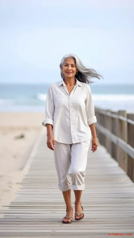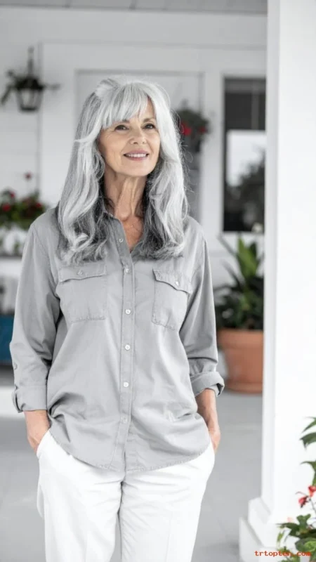 Yes, women over 70 can wear long hair if it stays healthy and feels comfortable. Long gray layers or a low, loose braid keep length while avoiding a heavy, dragging effect.