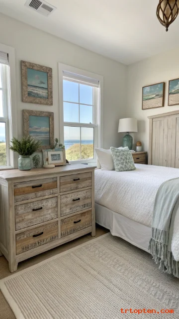 Pick dressers or nightstands with a whitewashed finish for that sun-faded look. It keeps the room bright while adding a beach house touch.