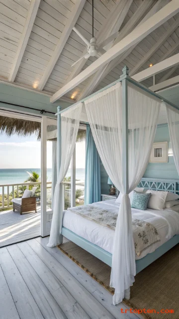 Start with white and sand tones, then add soft blues, woven pieces, and simple ocean-inspired accents. Stick to a clean layout, and your bedroom will feel like a calm coastal escape every day.