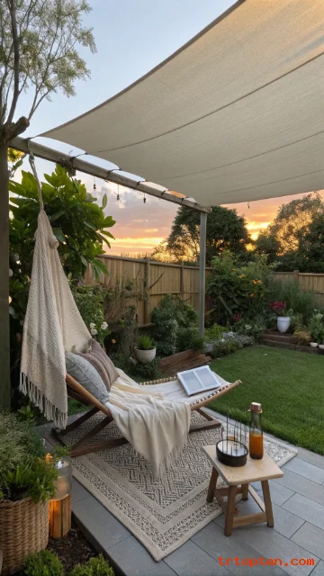 A hammock makes relaxing feel effortless. It creates a calm spot for reading or naps. Shade keeps the corner comfortable for longer.