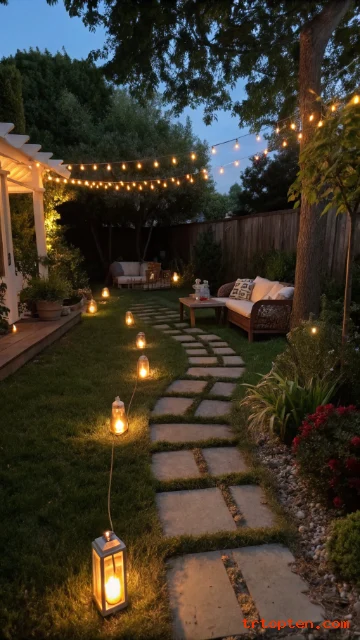 Combine path lanterns with a lit seating area. This guides guests toward the hangout zone. The backyard will feel welcoming from the first step.