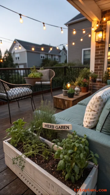 Place herb pots near the patio edge. Choose mint, basil, rosemary, and thyme for strong fragrance. Keep watering simple with a drip tray setup.