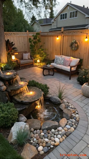 Water sound helps you relax. A small fountain can mask street noise. It also adds a soothing backyard vibe.