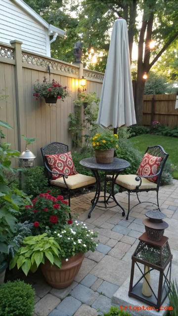 Use a small umbrella or overhead shade if needed. Add a lantern on the table for evening. The pocket will feel charming and calm.