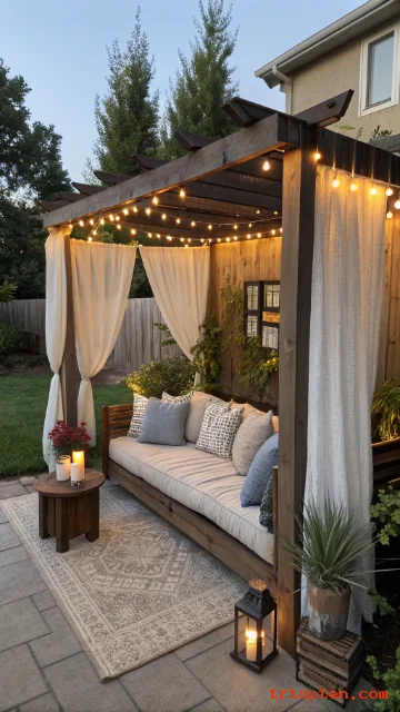 Outdoor curtains add softness and privacy fast. They also block wind and harsh sun when placed well. A simple pergola or frame can hold them.