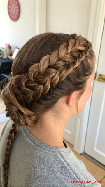 Use bobby pins that match your hair color. Keep the braid tight so it stays neat. Add a light shine spray to finish.