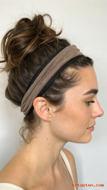 Use a grippy headband that will not slide. Start with lightly textured hair for easier tucking. Pull a few strands near the face for softness.