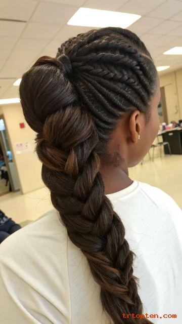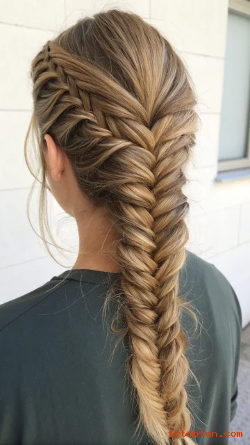 A fishtail braid looks detailed but is simple with practice. Thick hair makes the pattern stand out. It also stays secure for longer days.