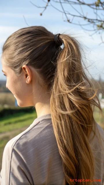 Curl the ponytail lightly for texture. Use a ribbon to dress it up. Keep the base snug so it does not slip.