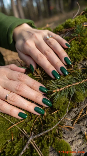 Forest green nails channel the feeling of walking through autumn woods. The shade is deep and calm but still full of color.