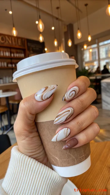 Latte swirl nails feel perfect for anyone who loves cozy coffee runs. The design looks like creamy milk swirling into espresso.