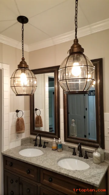 Swap builder-grade lights for hanging pendants. This lighting choice adds architectural interest. Use two pendants flanking a central mirror. Choose fixtures with metal shades or glass globes. Adjust the cord length for proper placement.