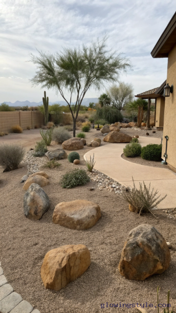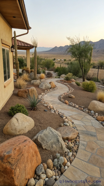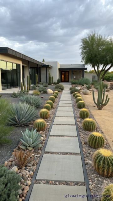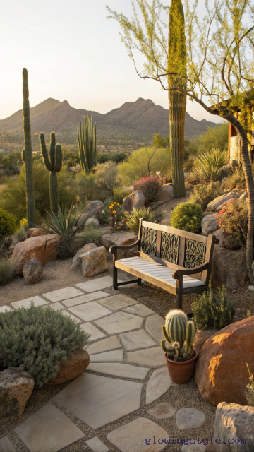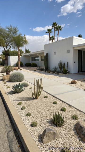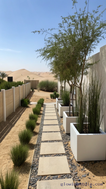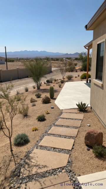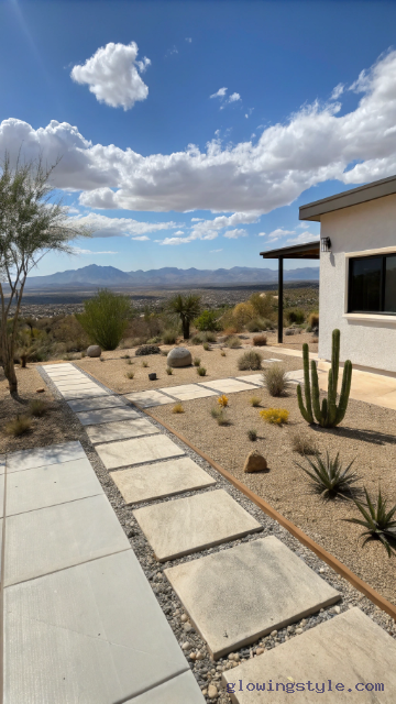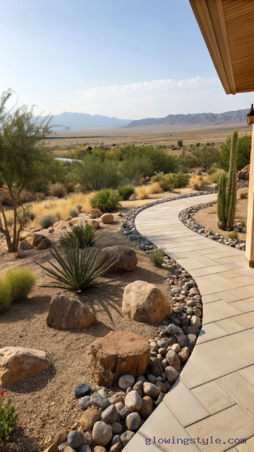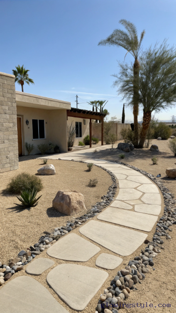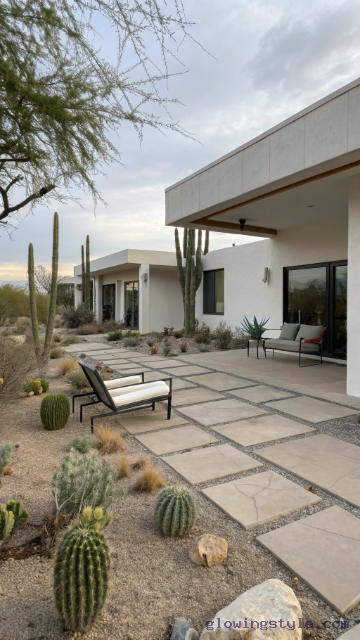 Use stone or concrete for durability. Keep colors neutral for a clean look. This matches desert style.