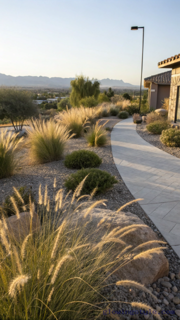 Combine grasses with gravel or rocks. This enhances texture and contrast. The yard feels balanced.